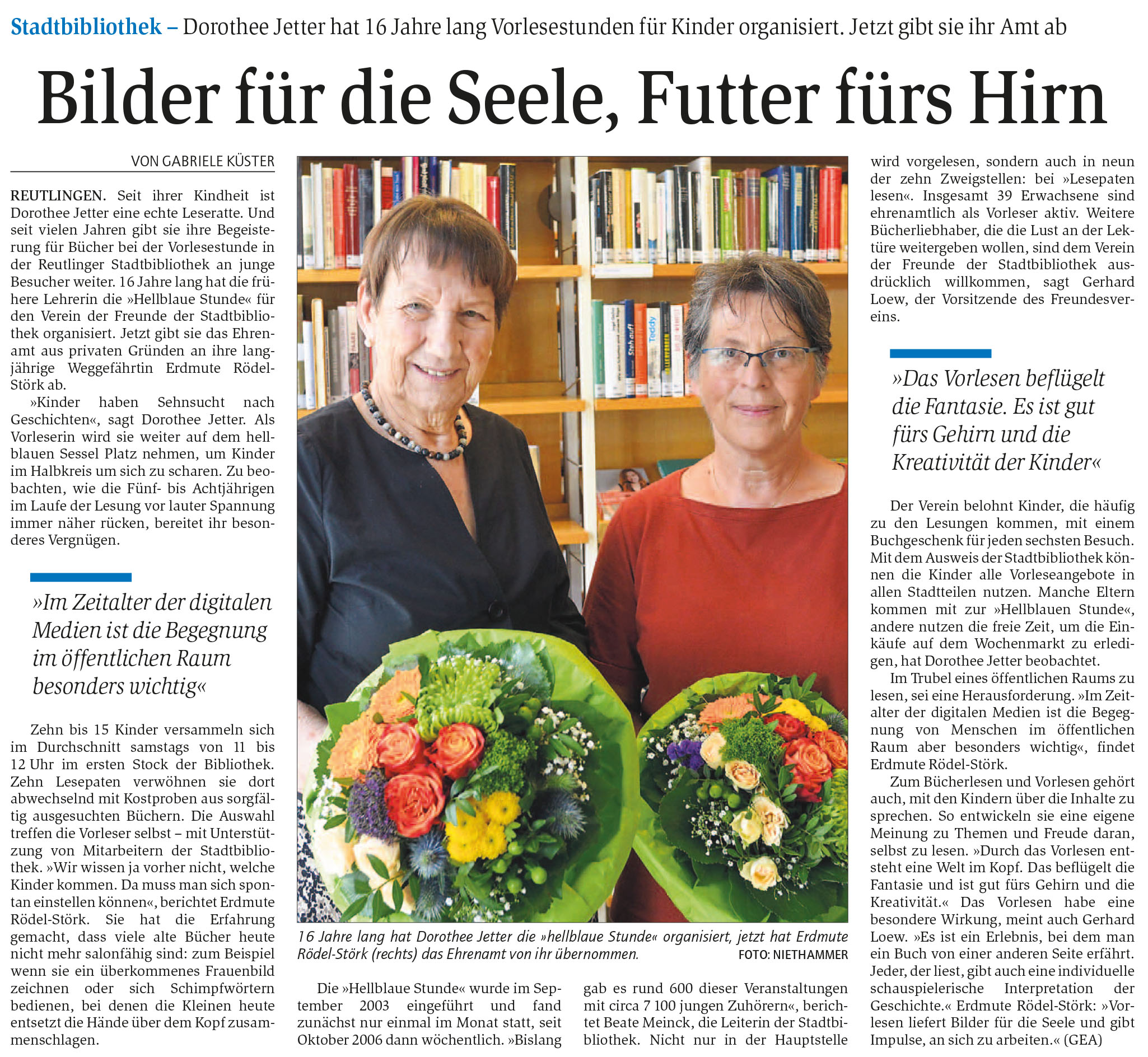 Stadtbibliothek - Dorothee Jetter hat 16 Jahre lang Vorlesestunden für Kinder organisiert. Jetzt gibt sie ihr Amt ab | Reutlinger General-Anzeiger www.gea.de 2.8.2019
