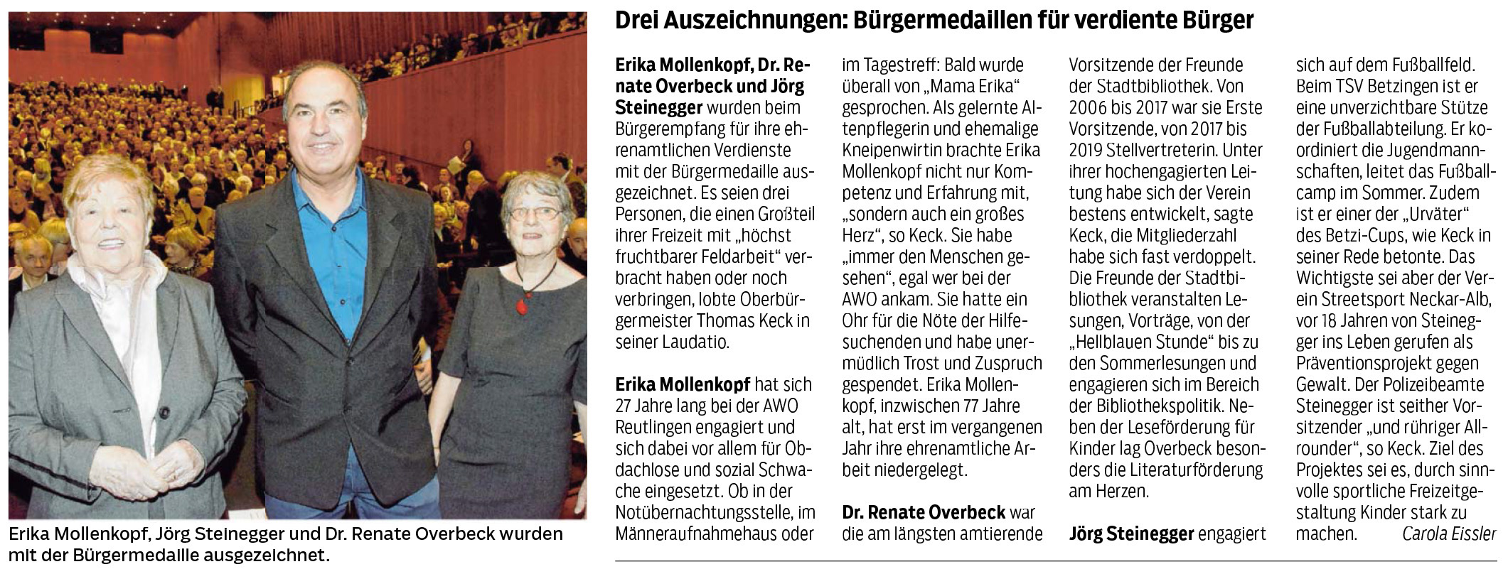Drei Auszeichnungen: Bürgermedaillen für verdiente Bürger