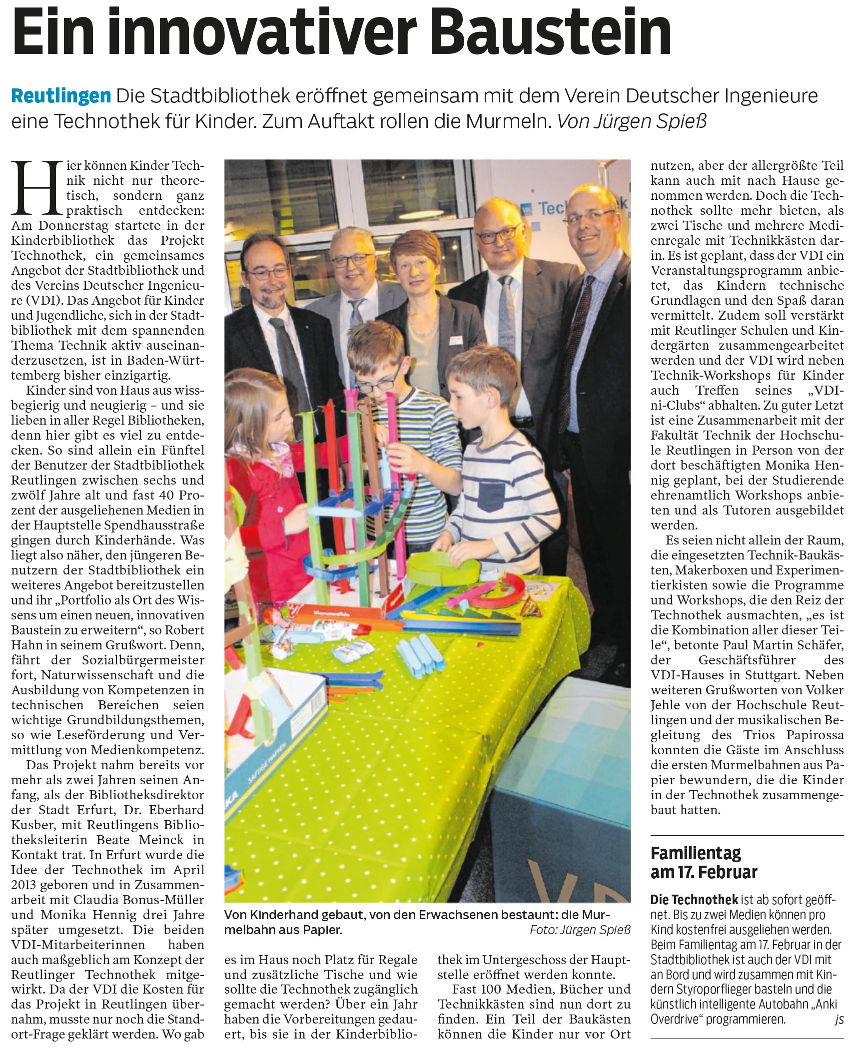 Partner der TechnoThek ist der VDI – Württembergischer Ingenieursverein, Bezirksgruppe Alb-Neckar