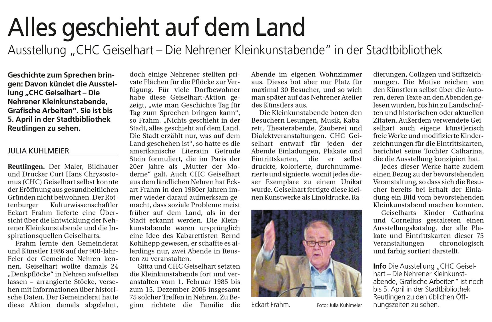 Ausstellung "CHC Geiselhart - die Nehrener Kleinkunstabende" in der Stadtbibliothek | Reutlinger Nachrichten 13.3.2014