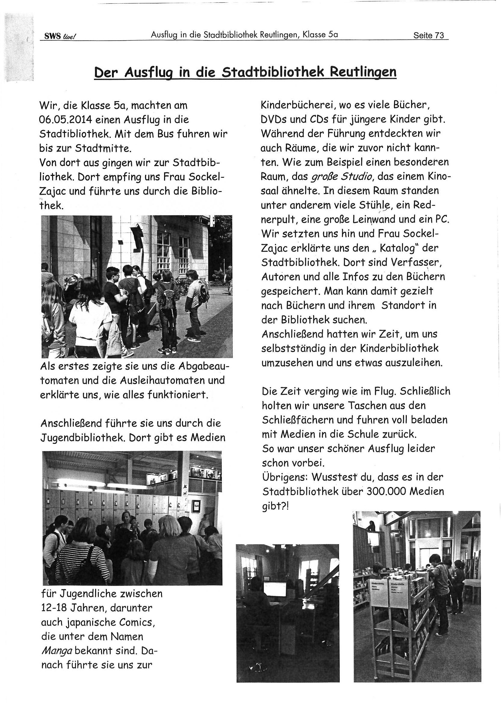 Sie sind hier: Startseite / Über uns / Presse / 2014 / Der Ausflug in die Stadtbibliothek Reutlingen