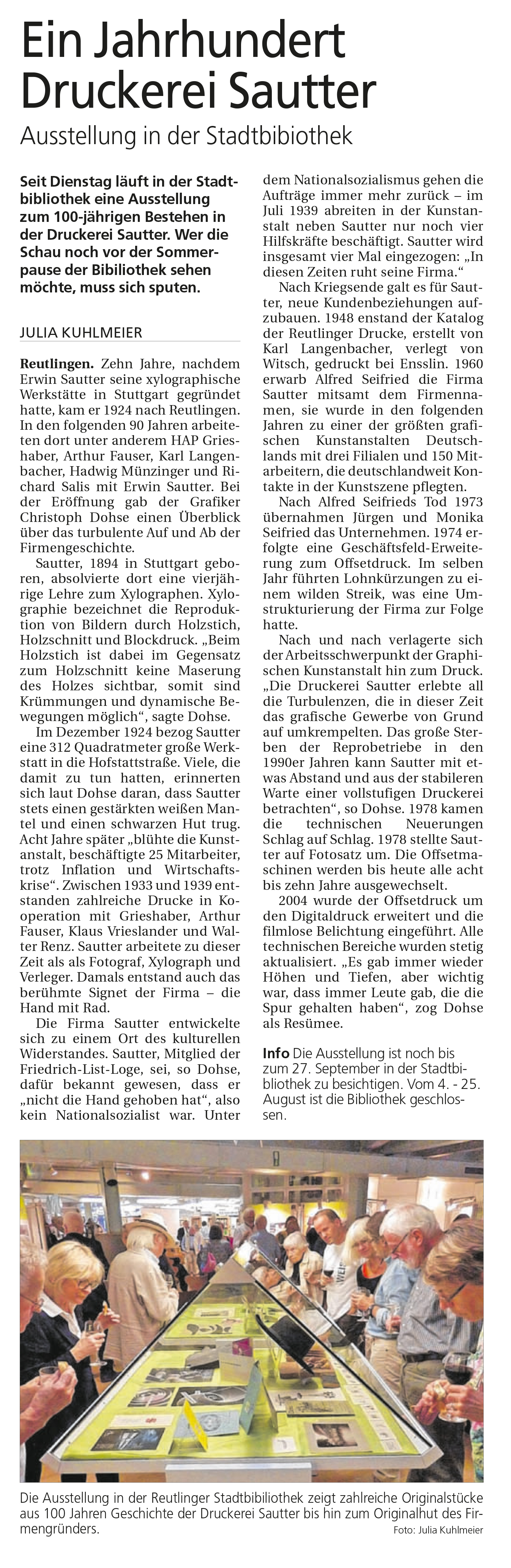 Ausstellung in der Stadtbibliothek | Reutlinger Nachrichten 2.8.2014