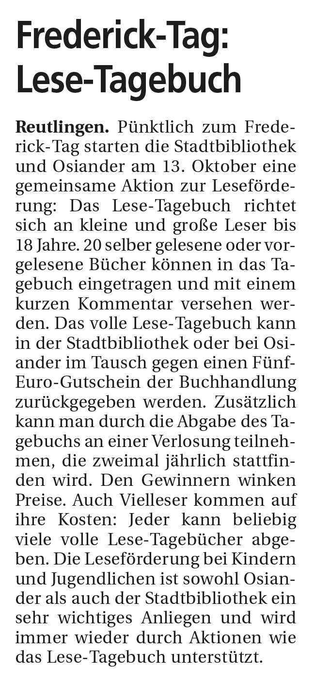Sie sind hier: Startseite / Über uns / Presse / 2014 / Frederick-Tag: Lese-Tagebuch