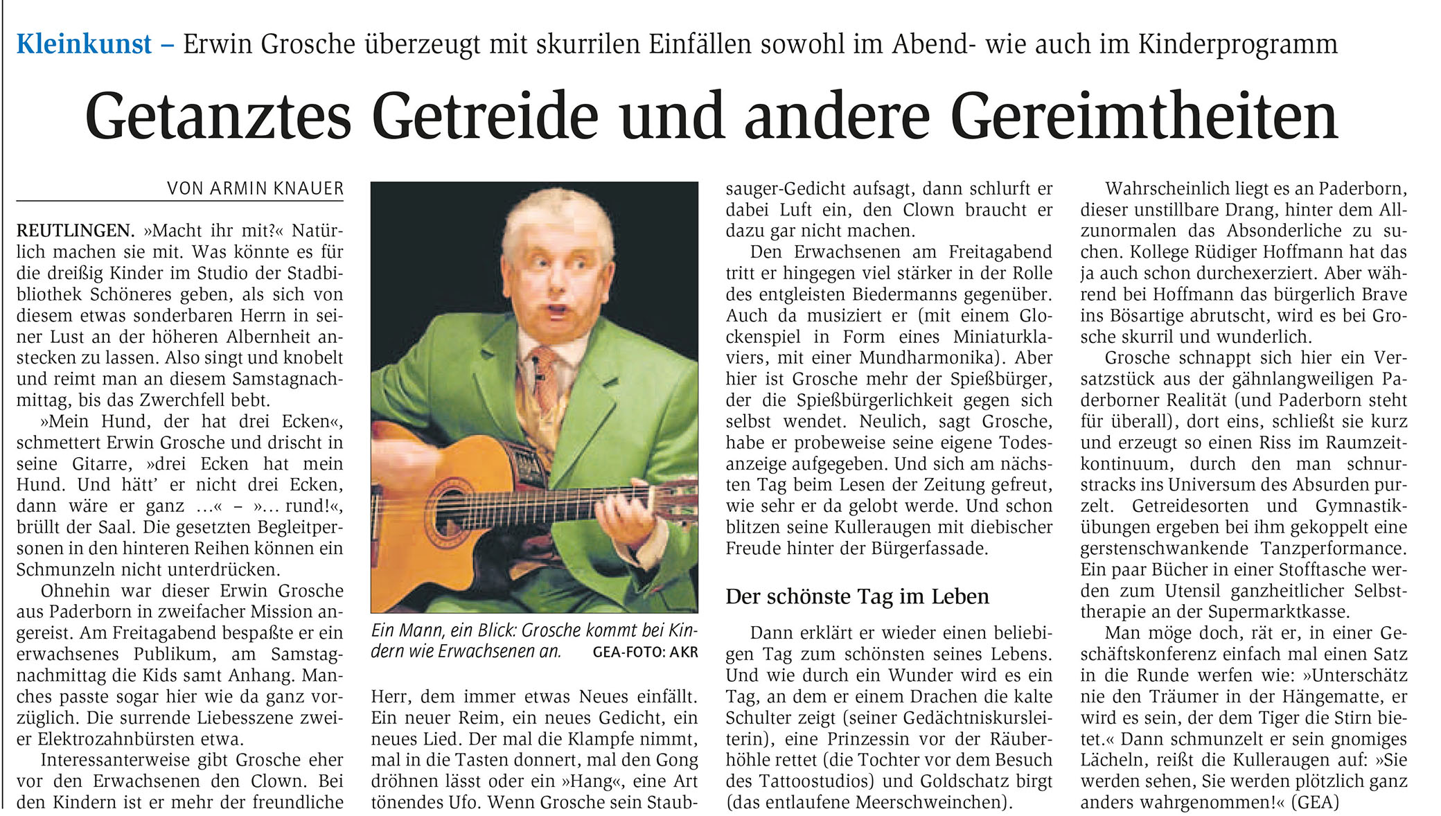Kleinkunst - Erwin Grosche überzeugt mit skurrilen Einfällen sowohl im Abend- wie auch im Kinderprogramm | Reutlinger General-Anzeiger www.gea.de 24.2.2014