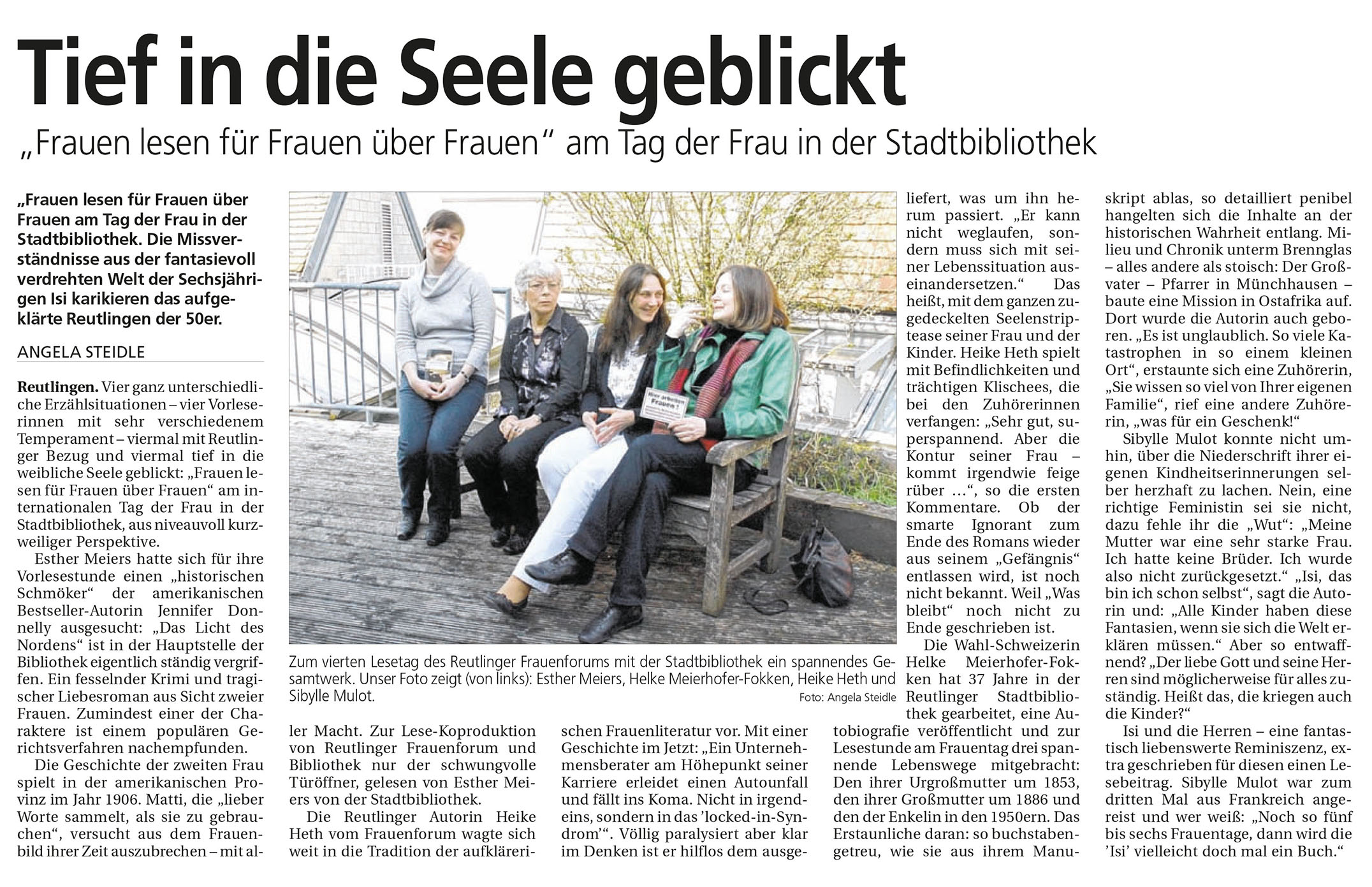 "Frauen lesen für Frauen über Frauen" am Tag der Frau in der Stadtbibliothek | Reutlinger Nachrichten 10.3.2014