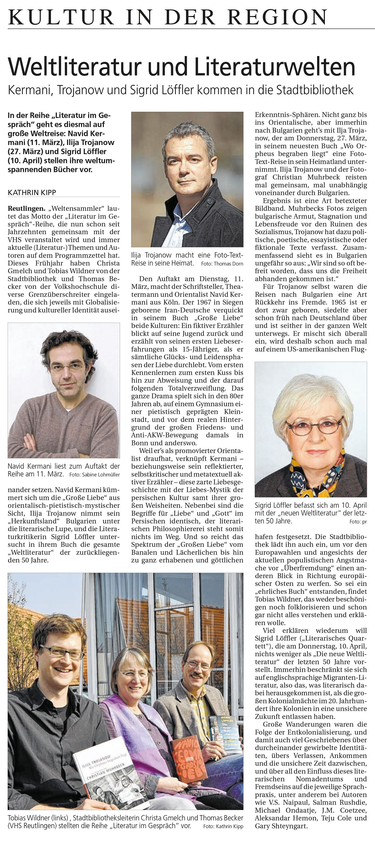 Kermani, Trojanow und Sigrid Löffler kommen in die Stadtbibliothek | Reutlinger Nachrichten 7.3.2014