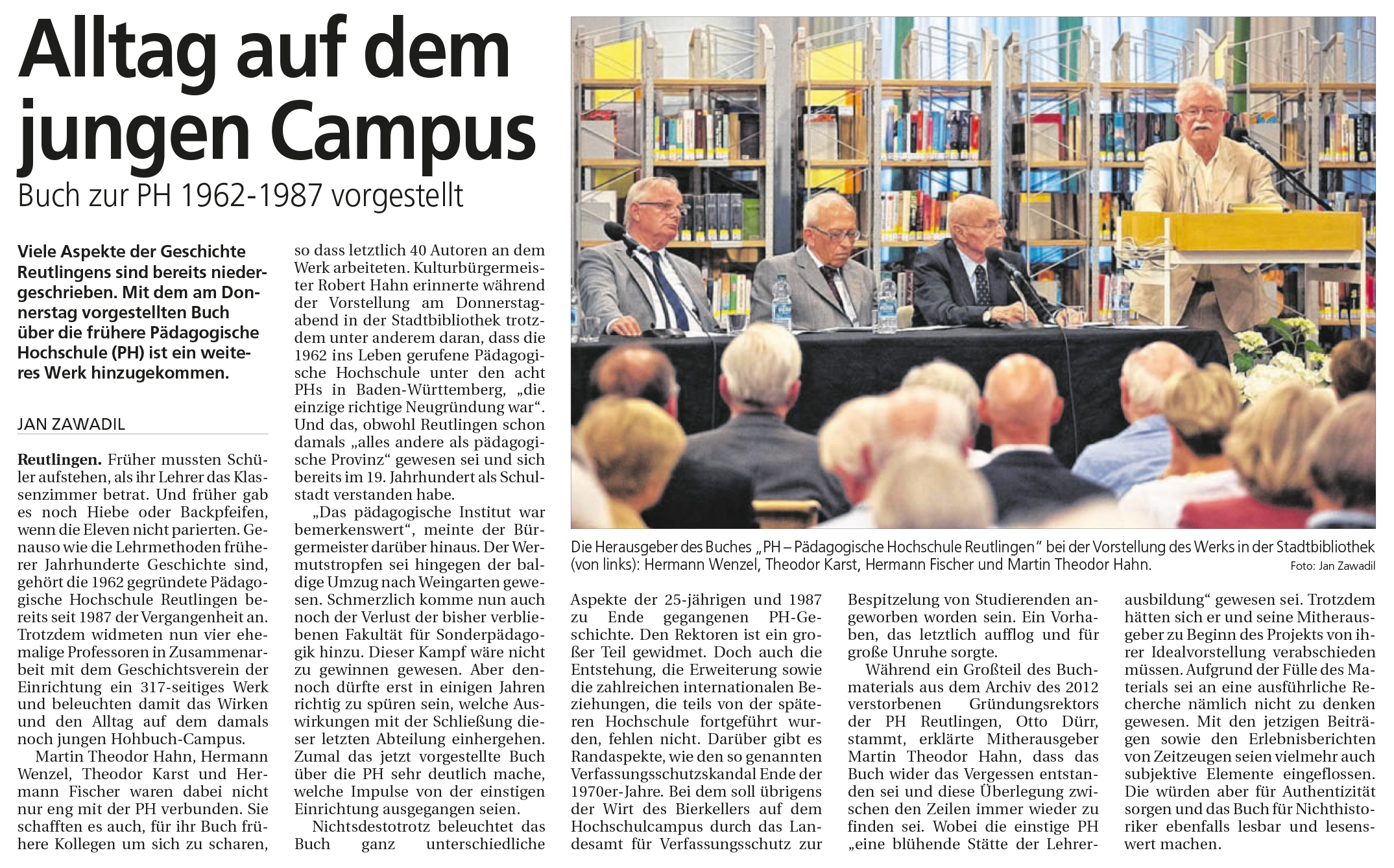 Buch zur PH 1962-1987 vorgestellt | Reutlinger Nachrichten 13.6.2015