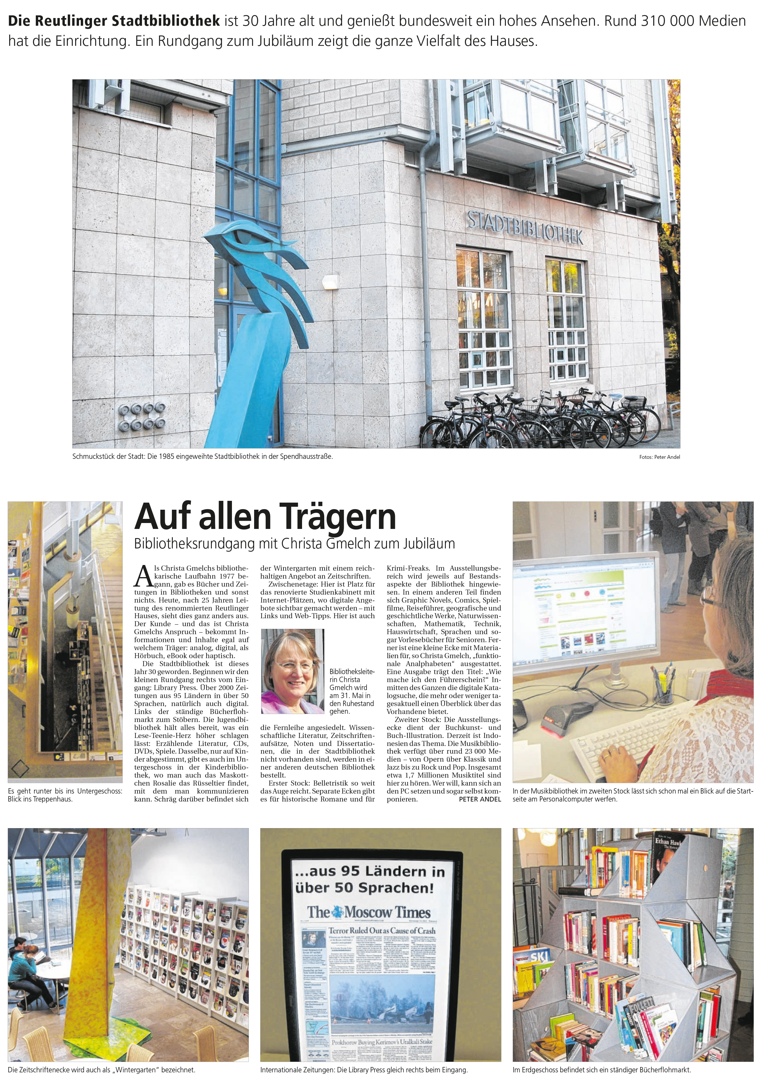 Bibliotheksrundgang mit Christa Gmelch zum Jubiläum | Reutlinger Nachrichten 7.11.2015