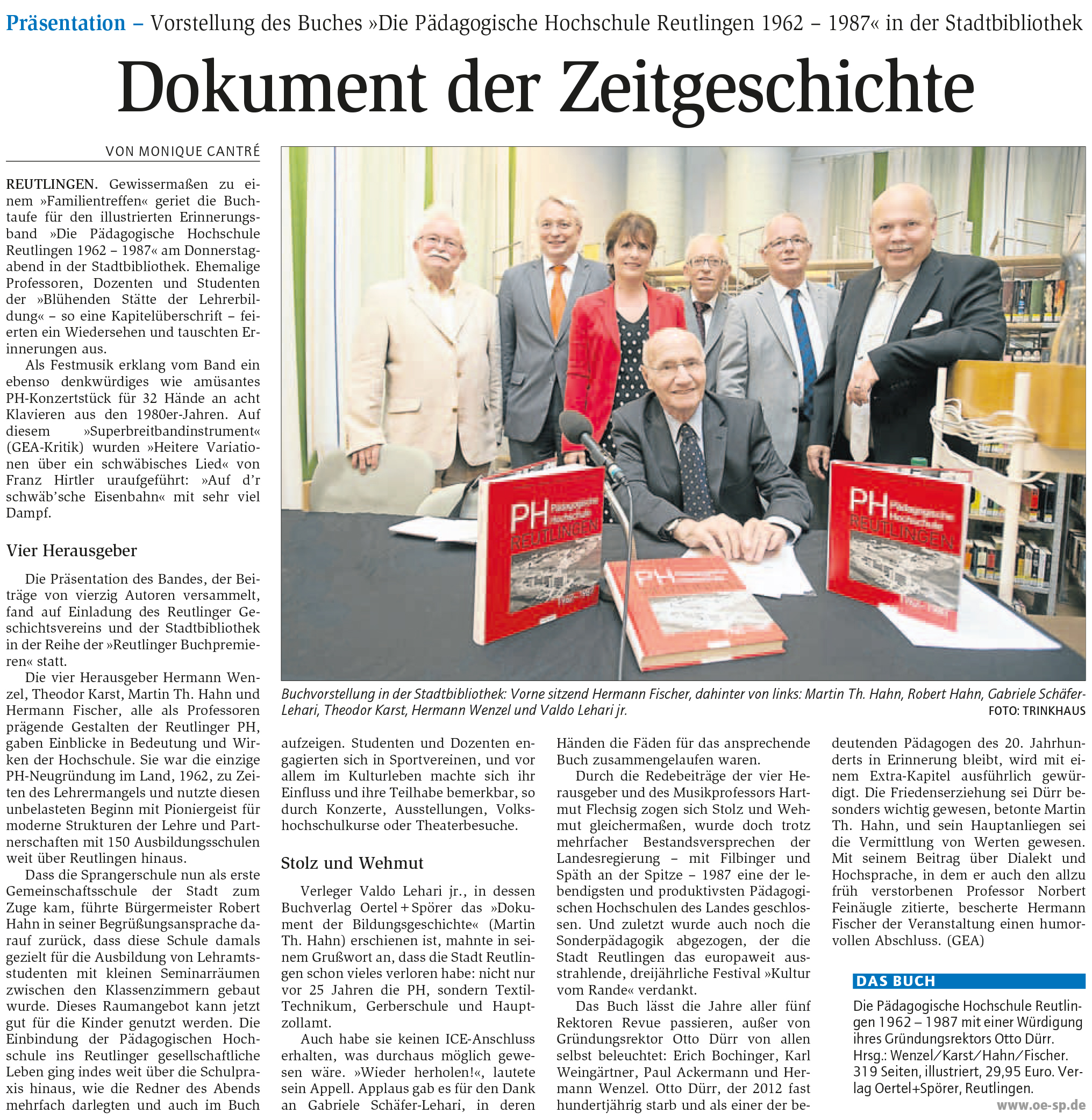 Präsentation - Vorstellung des Buches "Die Pädagogische Hochschule Reutlingen 1962-1987" in der Stadtbibliothek | Reutlinger General-Anzeiger www.gea.de 13.6.2015