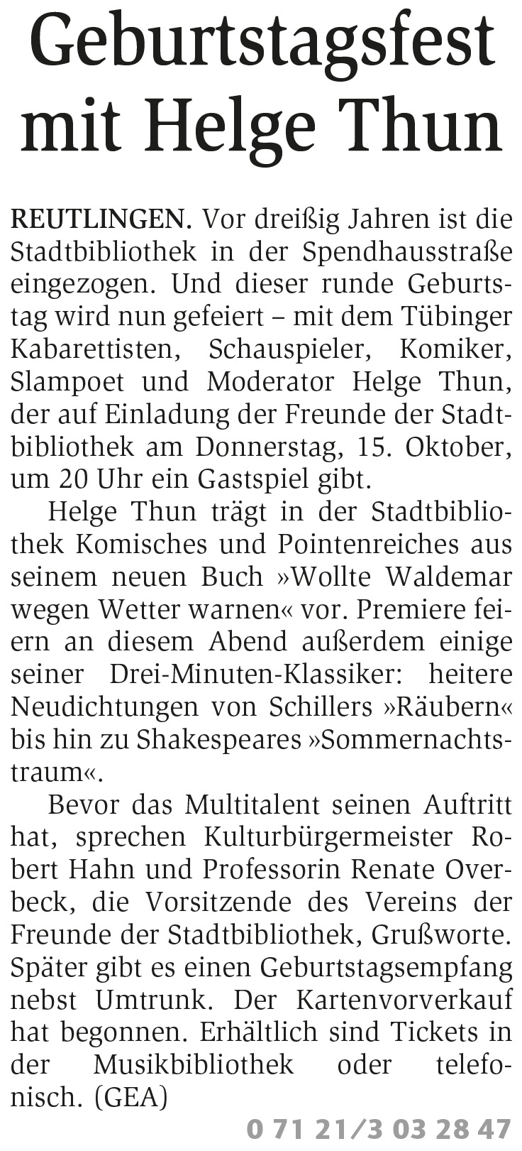 Sie sind hier: Startseite / Über uns / Presse / 2015 / Geburtstagsfest mit Helge Thun