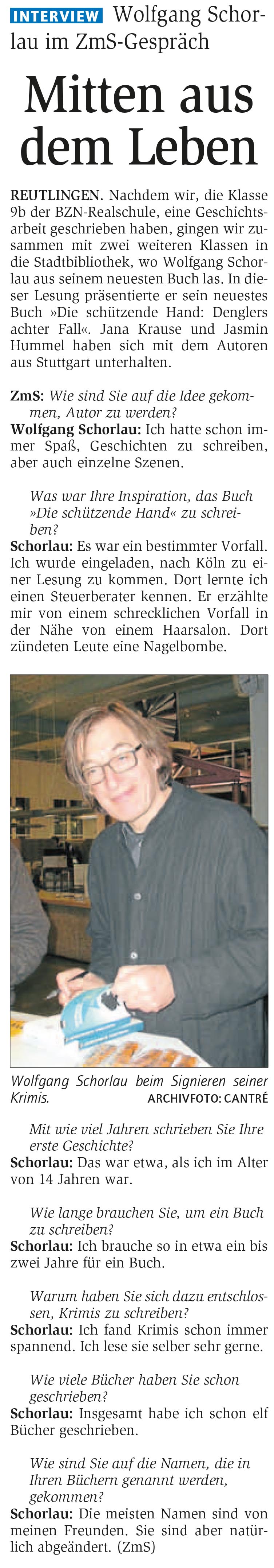 Interview - Wolfgang Schorlau im ZmS-Gespräch | Reutlinger General-Anzeiger www.gea.de 15.12.2015