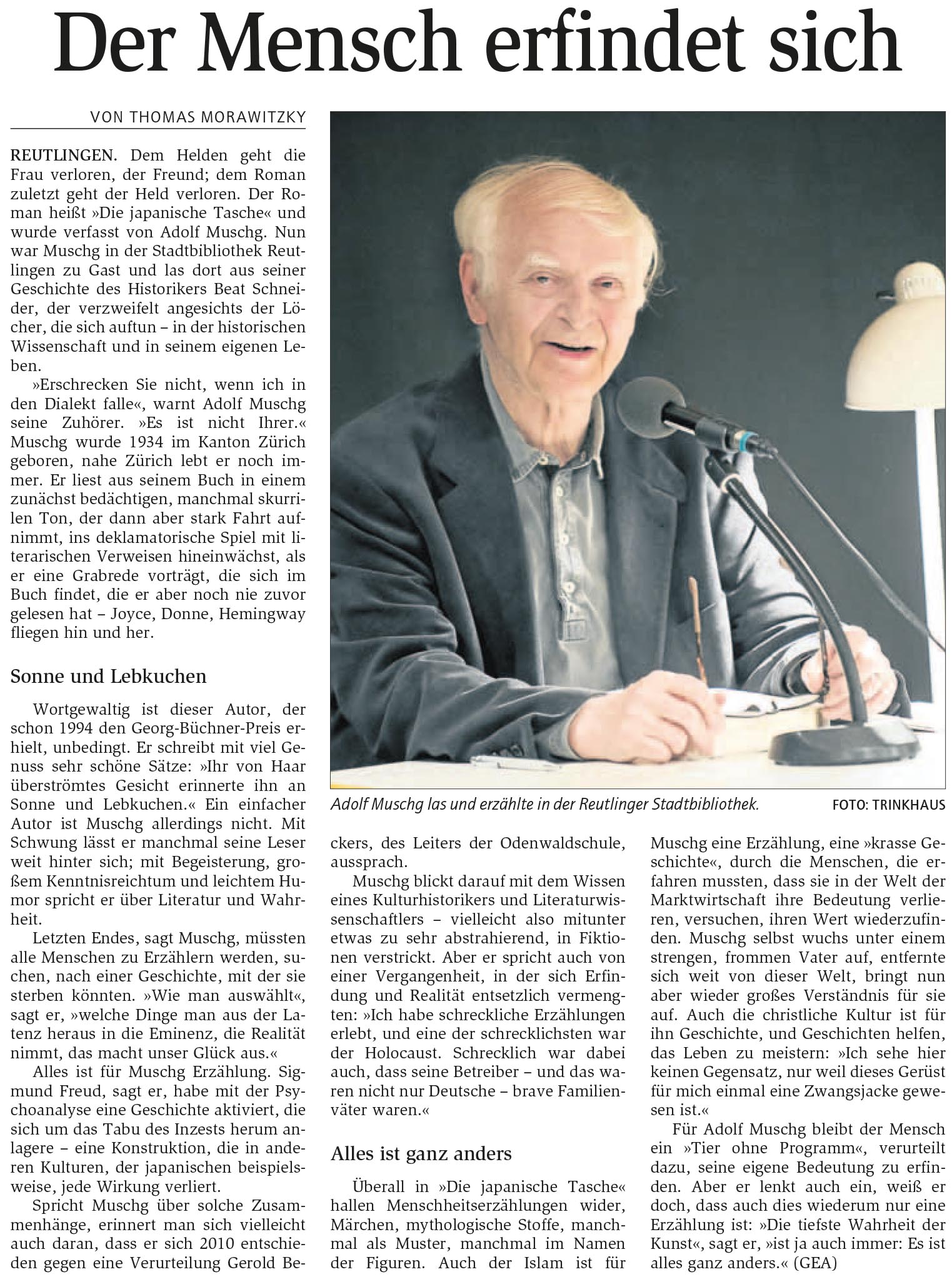 Literatur - Adolf Muschg war in der Stadtbibliothek zu Gast in der Reihe "Literatur im Gespräch" zum Thema Familiengehiemnisse | Reutlinger Generalanzeiger www.gea.de 21.3.2016