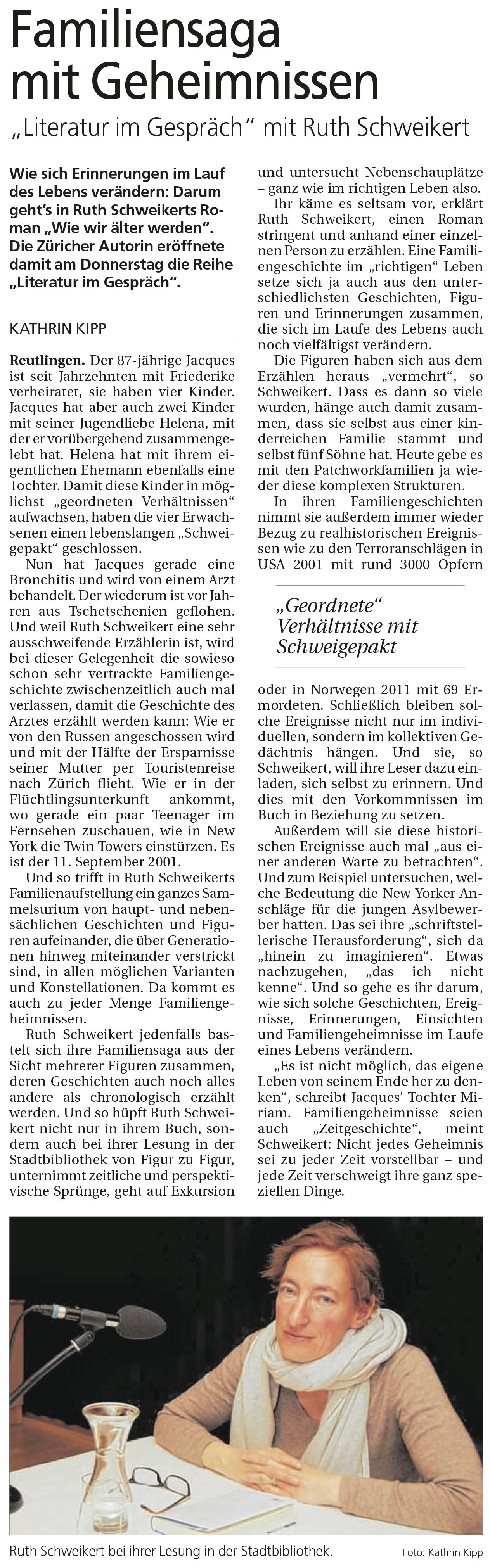 "Literatur im Gespräch" mit Ruth Schweikert | Reutlinger Nachrichten 12.3.2016