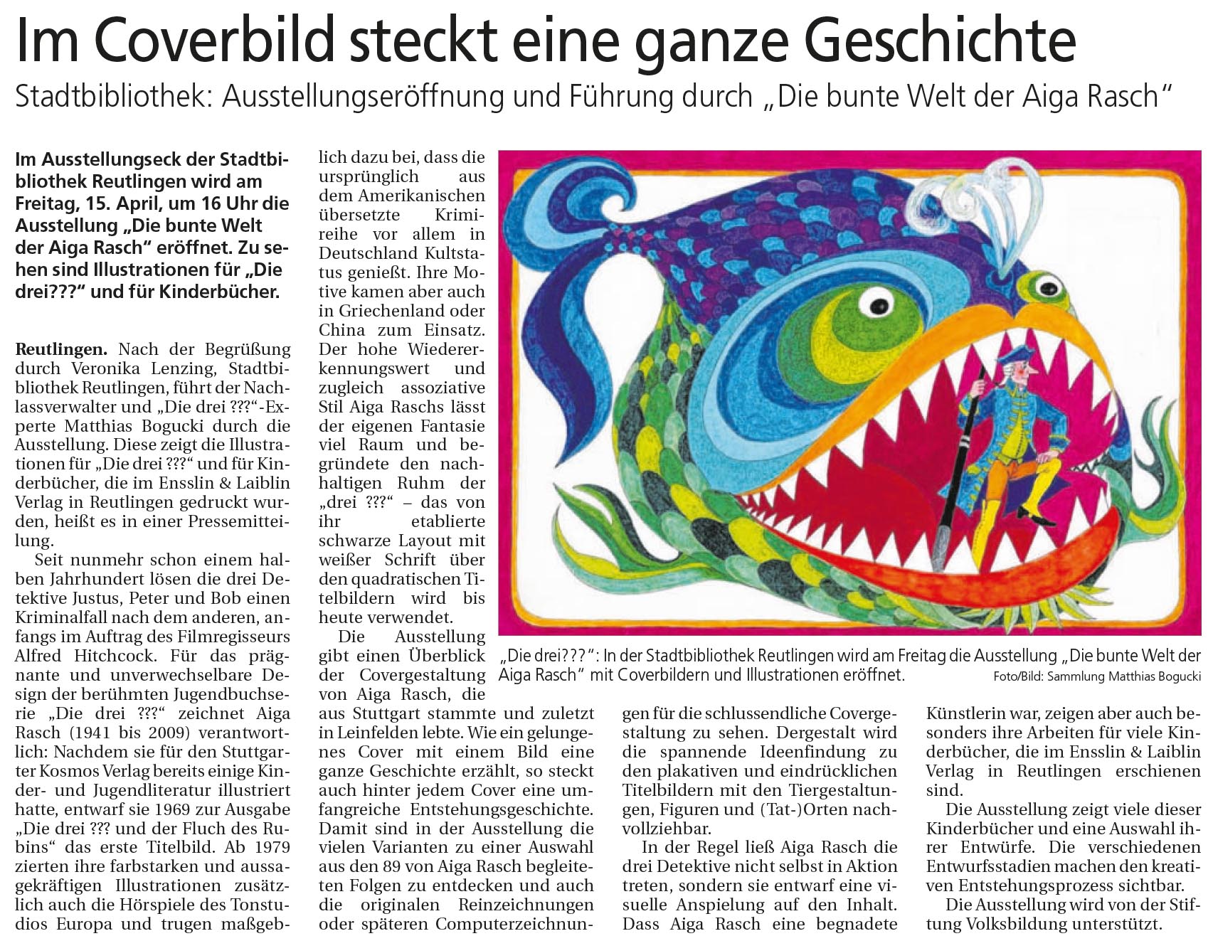 Stadtbibliothek: Ausstellungseröffnung und Führung durch "Die bunte Welt der Aiga Rasch" | Reutlinger Nachrichten 13.4.2016