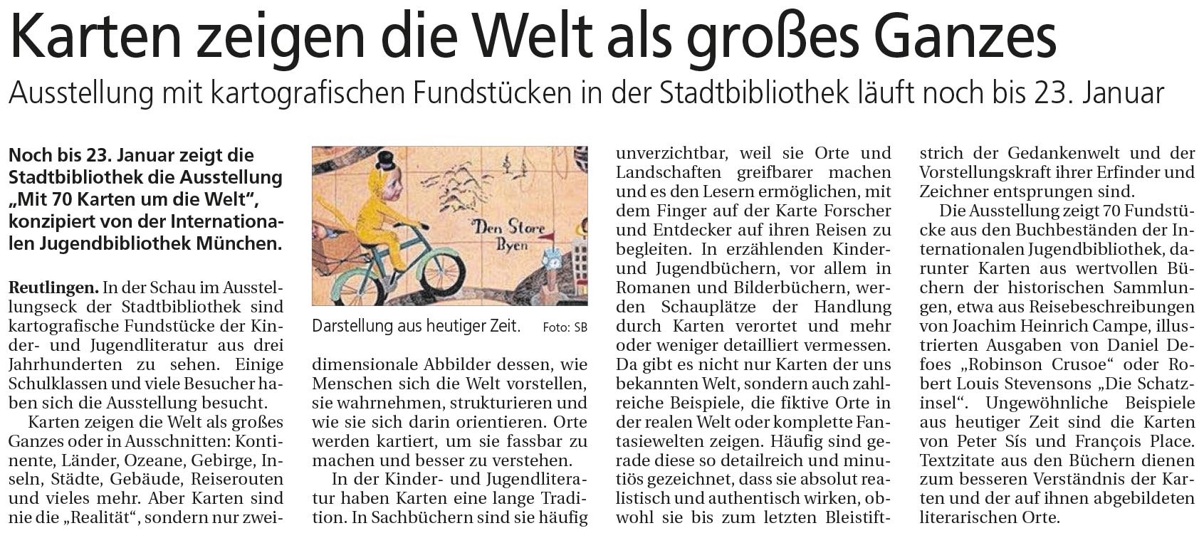 Ausstellung mit kartografischen Fundstücken in der Stadtbibliothek läuft noch bis 23. Januar | Reutlinger Nachrichten 18.1.2016