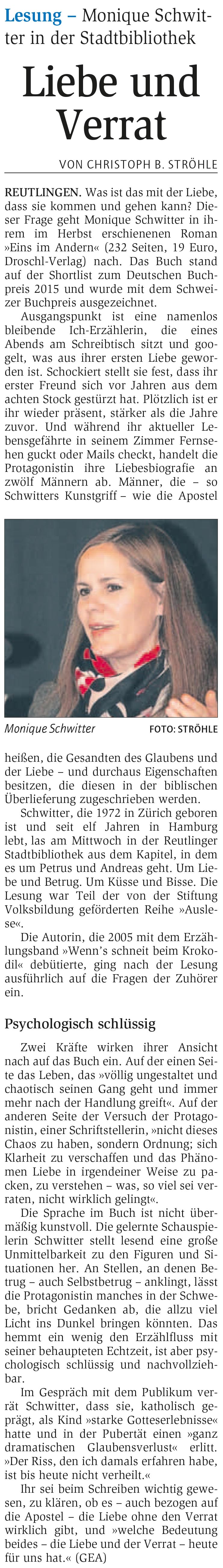 Lesung - Monique Schwitter in der Stadtbibliothek | Reutlinger General-Anzeiger www.gea.de 15.1.2016