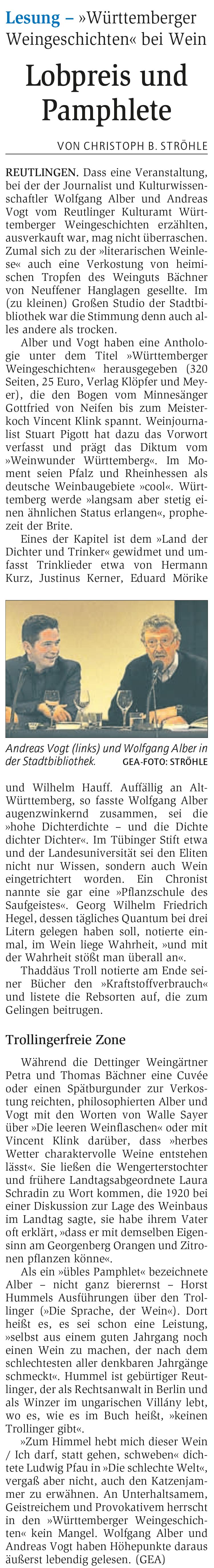 Lesung - "Württemberger Weingeschichten" bei Wein | Reutlinger General-Anzeiger www.gea.de 17.5.2016