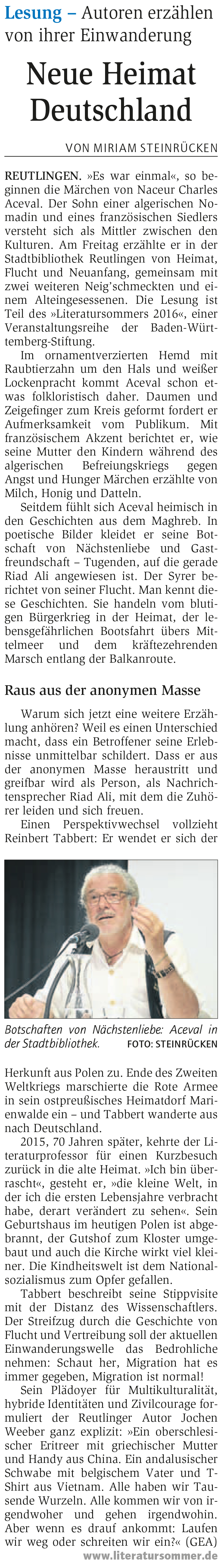 Lesung - Autoren erzählen von ihrer Einwanderung | Reutlinger General-Anzeiger www.gea.de 13.6.2016