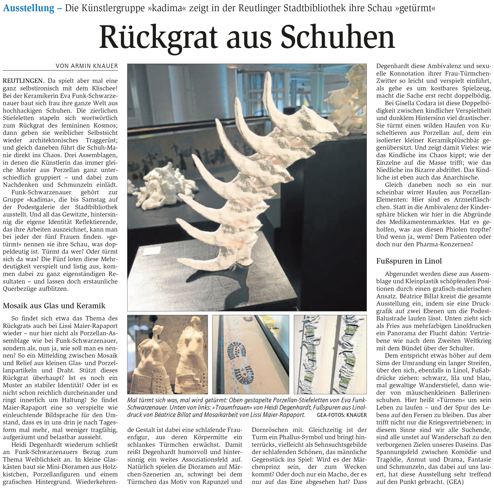 Ausstellung - Die Künstlergruppe "kadima" zeigt in der Reutlinger Stadtbibliothek ihre Schau "getürmt" | Reutlinger General-Anzeiger www.gea.de 18.4.2016