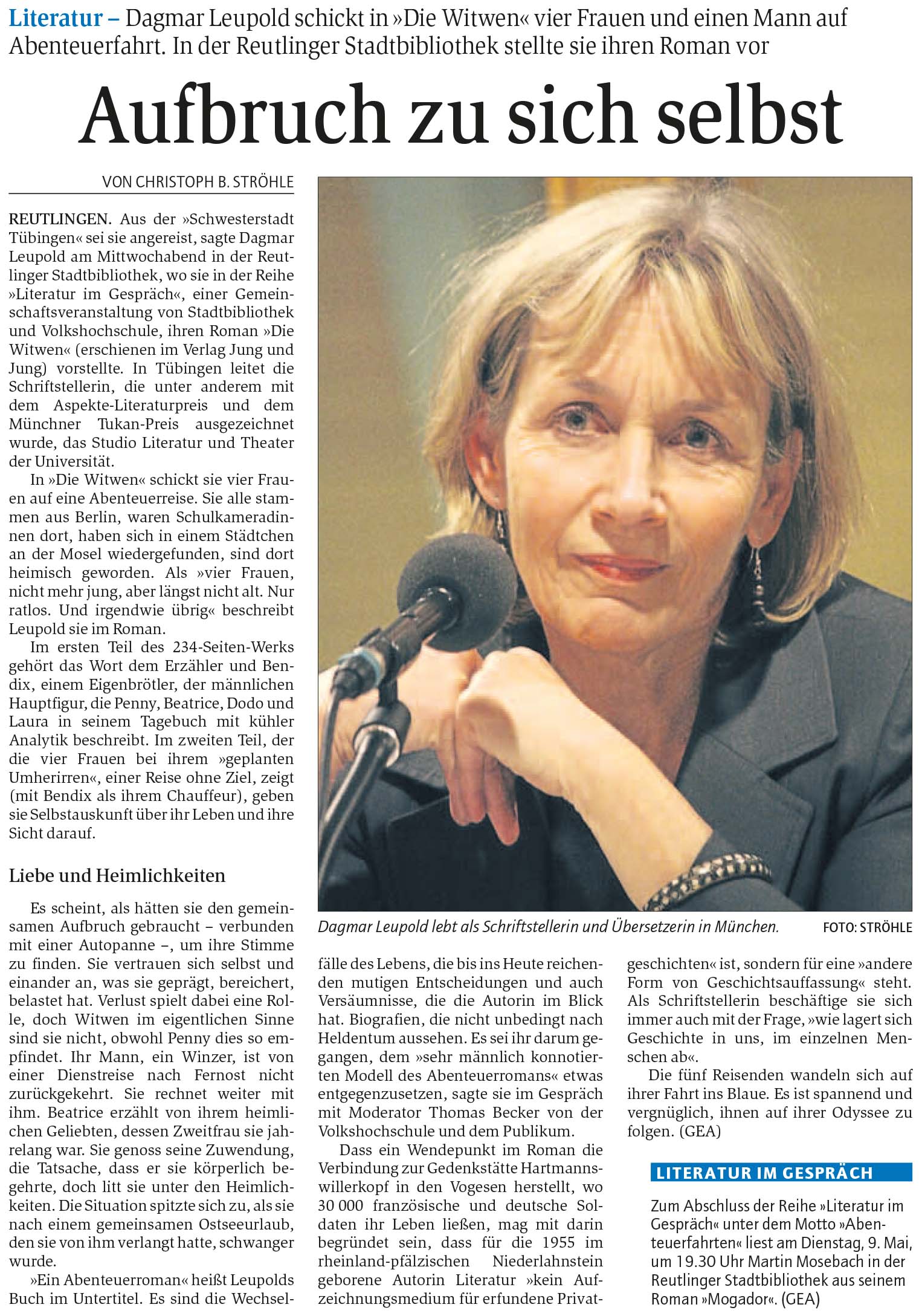 Literatur - Dagmar Leupold schickt in "Die Witwen" vier Frauen und einen Mann auf Abenteuerfahrt. In der Reutlinger Stadtbibliothek stellte sie ihren Roman vor | Reutlinger General-Anzeiger www.gea.de 28.4.2017