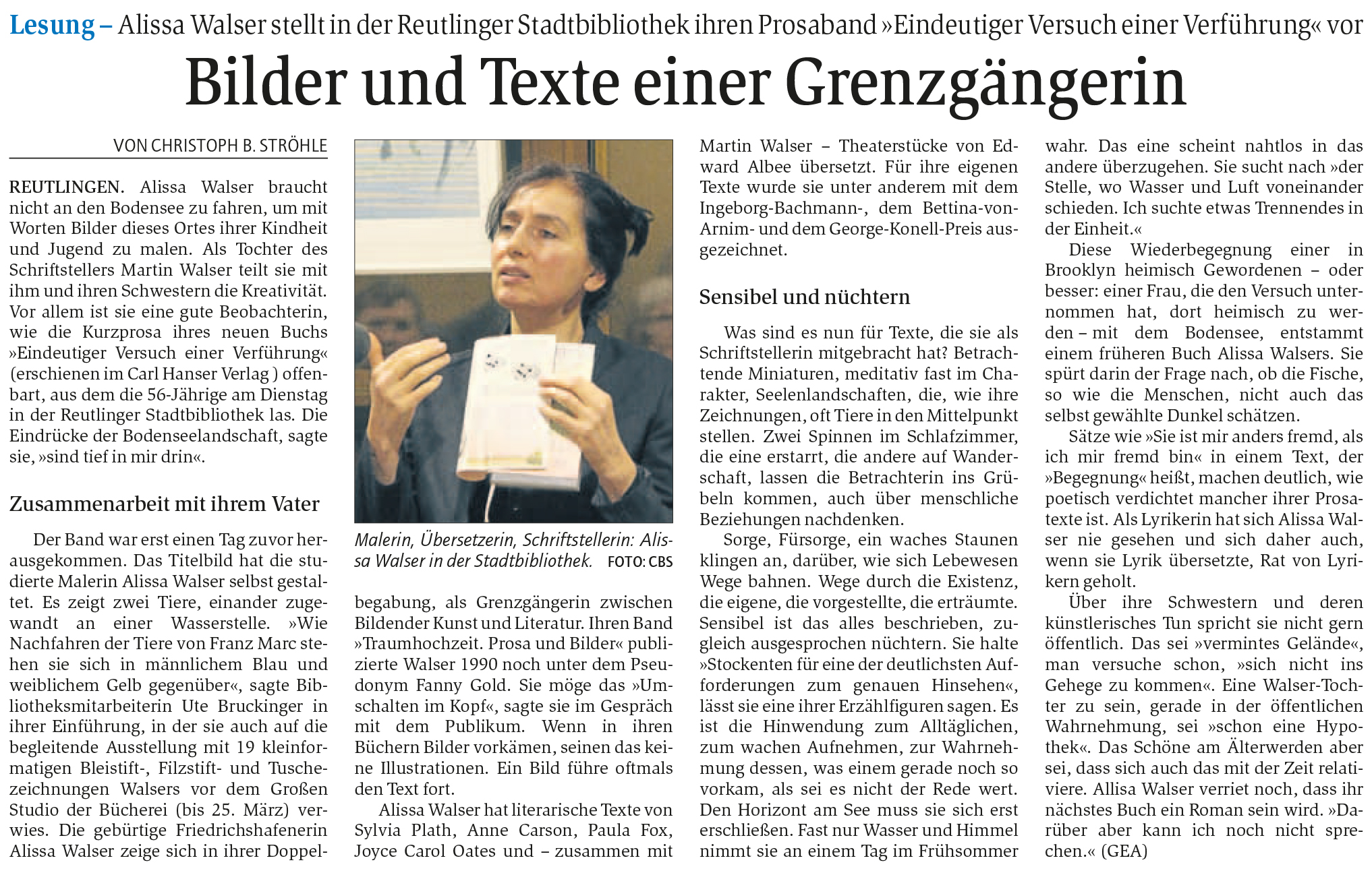 Lesung - Alissa Walser stellt in der Reutlinger Stadtbibliothek ihren Prosaband "Eindeutiger Versuch einer Verführung" vor | Reutlinger General-Anzeiger www.gea.de 23.2.2017