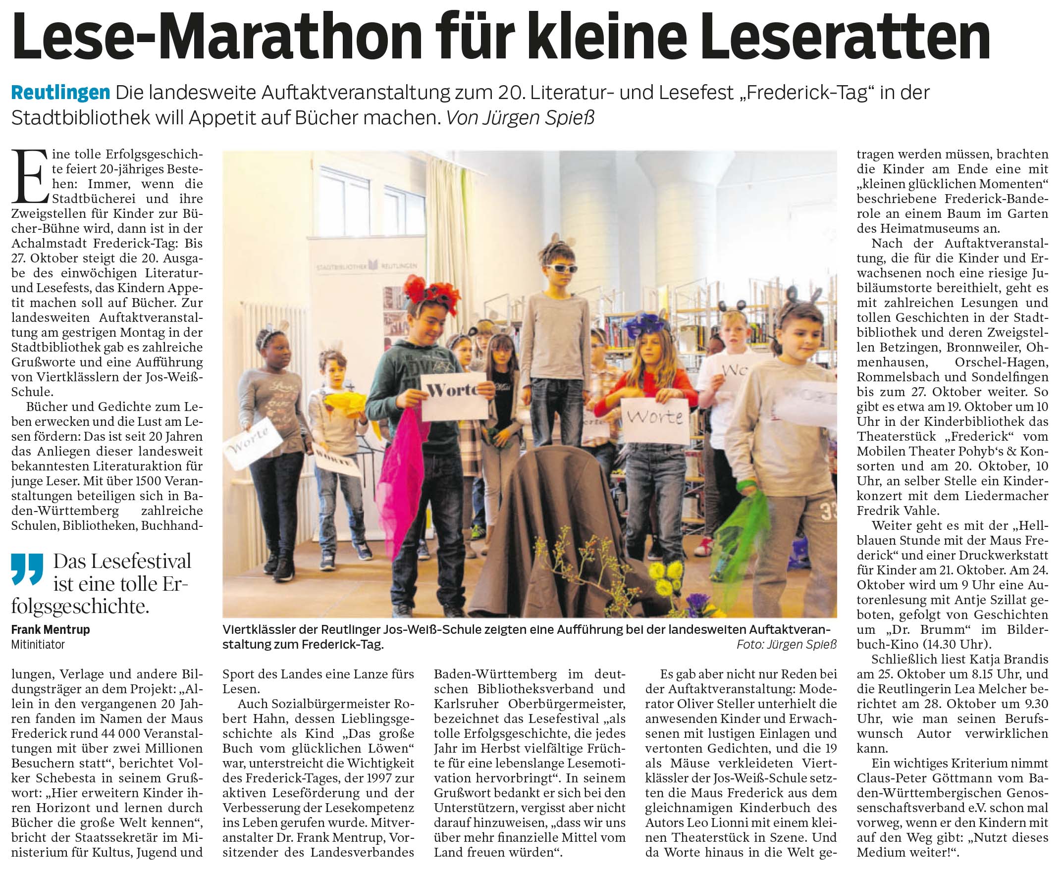 Reutlingen - Die landesweite Auftaktveranstaltung zum 20. Literatur- und Lesefest "Frederick-Tag" in der