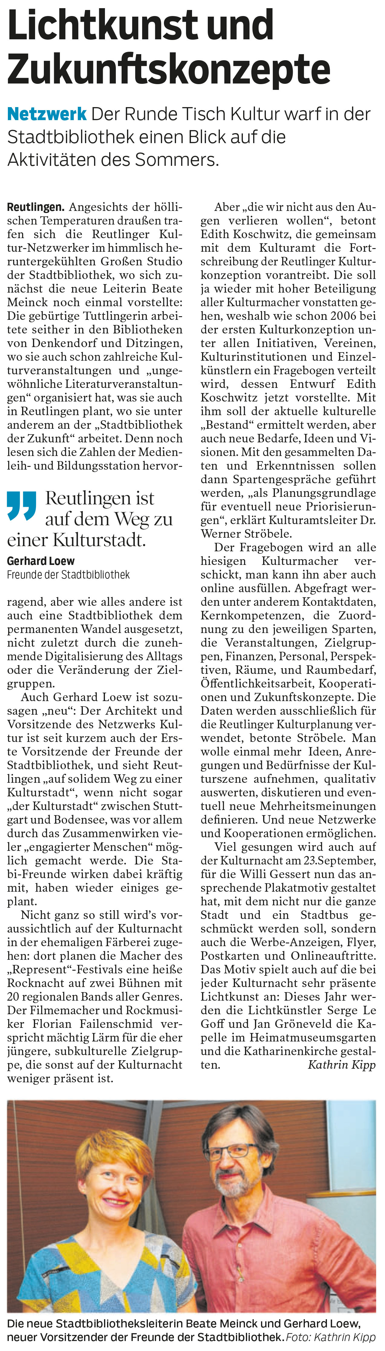 Netzwerk - Der Runde Tisch Kultur warf in der Stadtbibliothek einen Blick auf die Aktivitäten des Sommers. | Reutlinger Nachrichten 13.7.2017