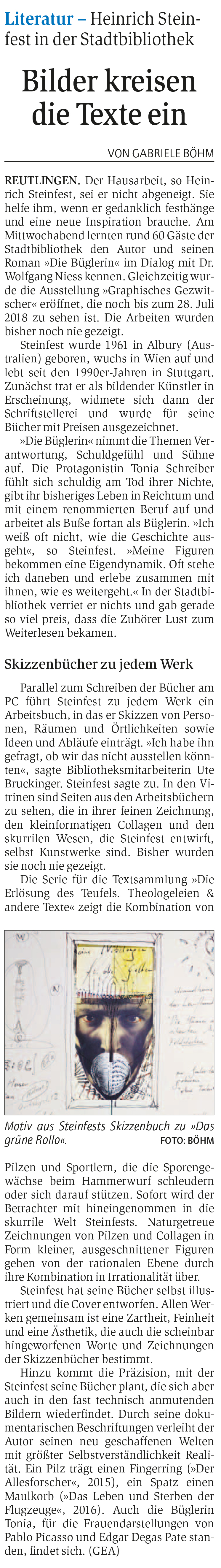 Literatur - Heinrich Steinfest in der Stadtbibliothek | Reutlinger General-Anzeiger www.gea.de 7.7.2018