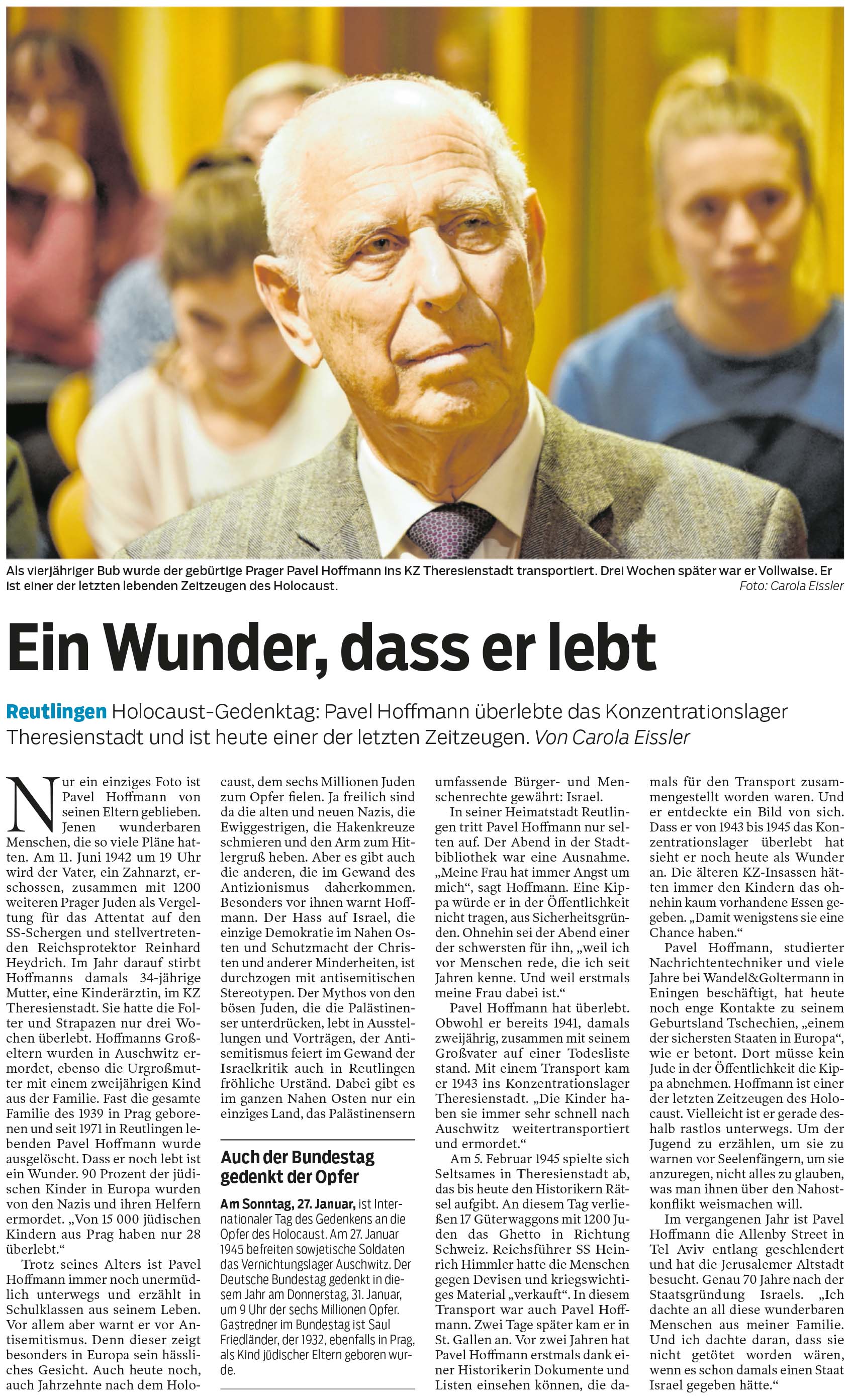 Reutlingen - Holocaust-Gedenktag: Pavel Hoffmann überlebte das Konzentrationslager Theresienstadt und ist heute einer der letzten Zeitzeugen. | Reutlinger Nachrichten 26.1.2019