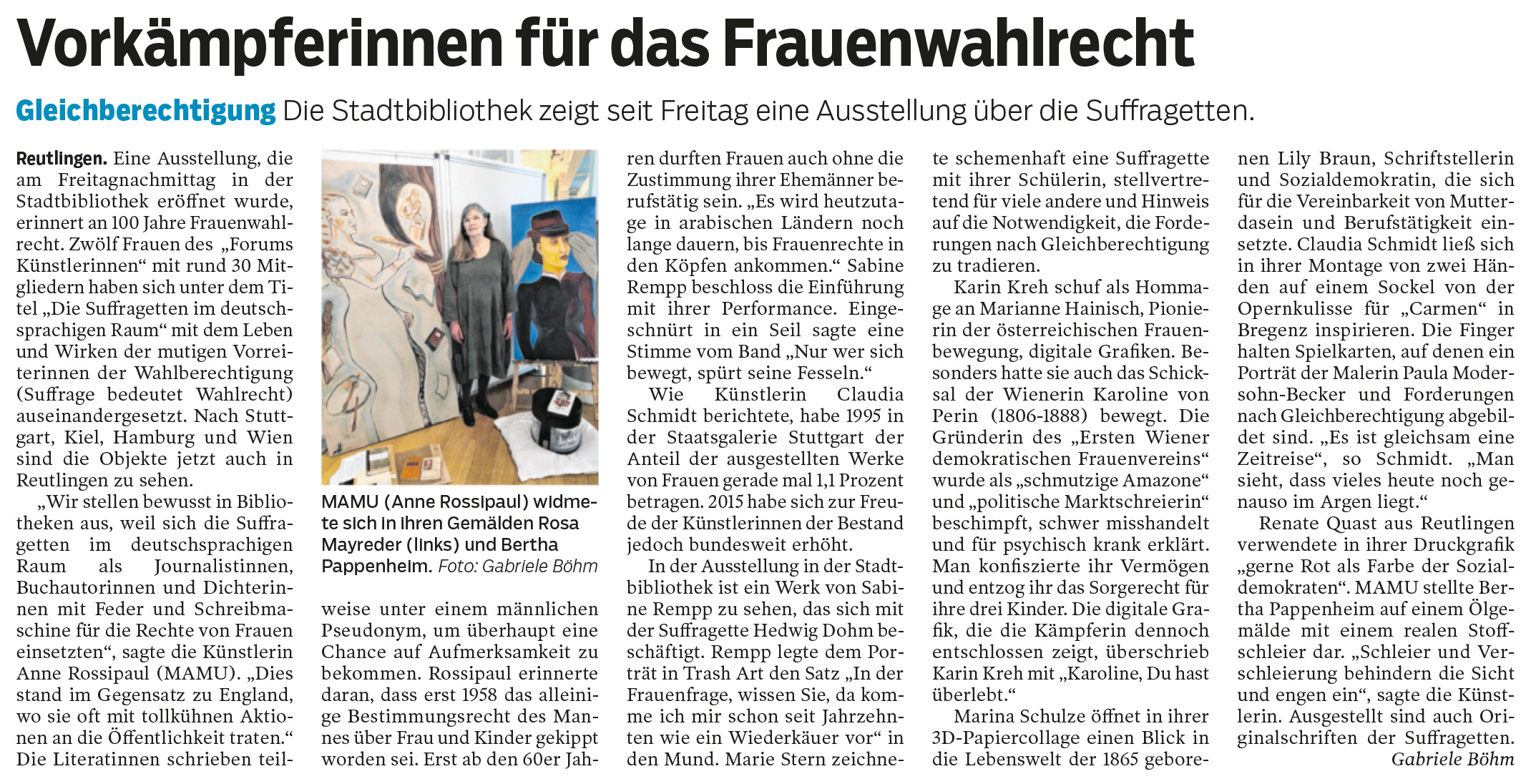 Gleichberechtigung - Die Stadtbibliothek zeigt seit Freitag eine Ausstellung über die Suffragetten. | Reutlinger Nachrichten 3.6.2019